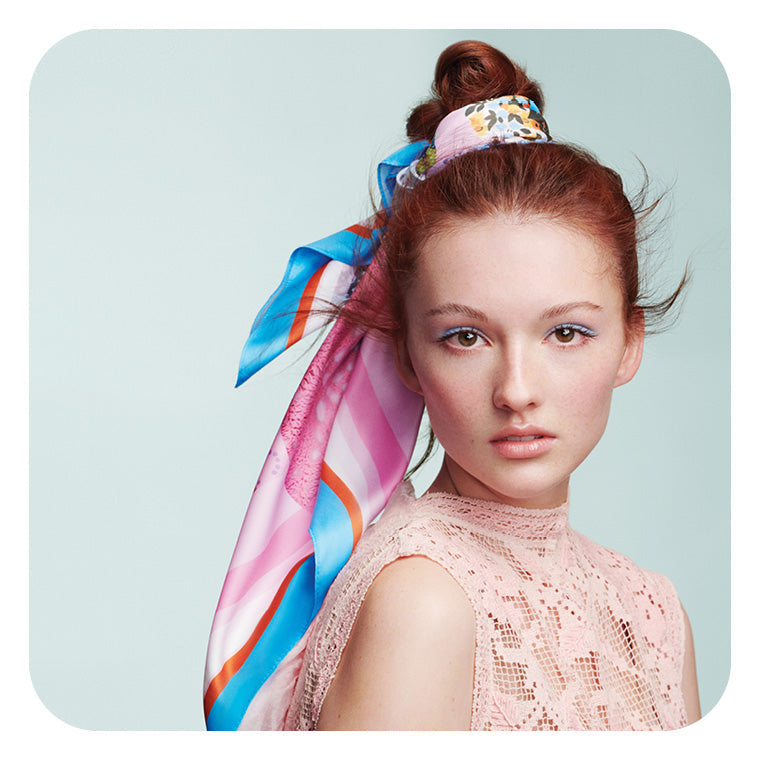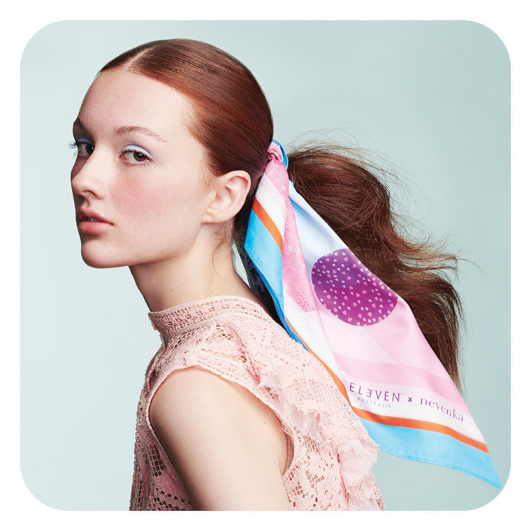 Finish the style by securing your ELEVEN Australia X NEVENKA Limited-Edition Designer Scarf around the base of the top knot.