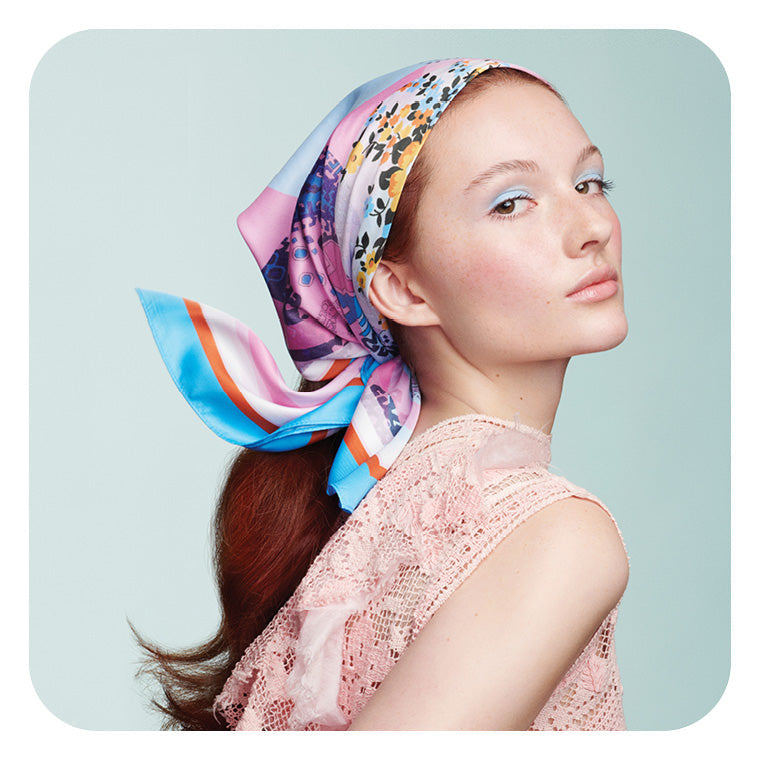 1 scarf, 3 timeless and effortless looks. The multi-functional scarf can be styled in numerous ways to continuously refresh and reinvigorate your style. Elevate your ponytail, twist and tie into your top knot or secure it as a headscarf. This NEVENKA designer scarf is the perfect accessory to any look.