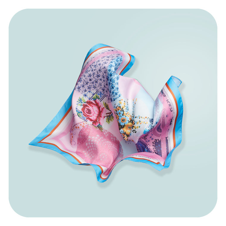 The iconic NEVENKA design pays homage to the distinctive colour palette, textures and architectural elements of Croatia, Italy, Turkey and Balkan countries alike. Bold lines and geometric shapes interjected by florals make for a unique, Eastern European inspired scarf, one truly authentic to NEVENKA’s brand aesthetic. The multi-functional scarf can be styled in numerous ways to continuously refresh and reinvigorate your style. Elevate your ponytail, twist and tie into your top knot or secure as a headscarf.